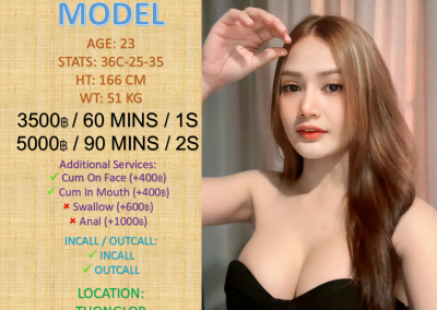 All images and details provided on our website are 100% genuine and accurate. Our alluring companions are available for engagements in both Bangkok & Chiang Mai & Phuket, Thailand. Contact us to enjoy an unforgettable time with our escorts.